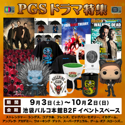 日本最大の音楽、映画、ドラマ、コミック、スポーツなどのエンターテイメント公式グッズ・ストアPGSを運営する株式会社JAMSHOPPINGは、海外ドラマを特集するPop-up Store「PGSドラマ特集」を池袋パルコ本館B2Fイベントスペースにて、2022年9月3日(土)~10月2日(日)までオープンいたします。