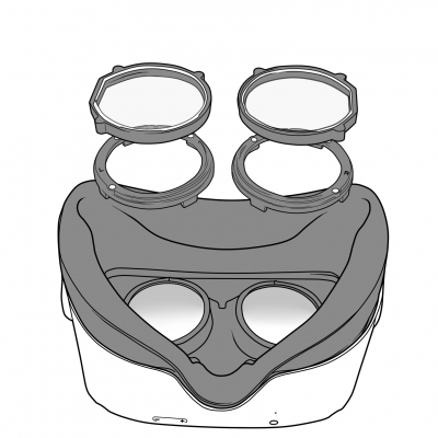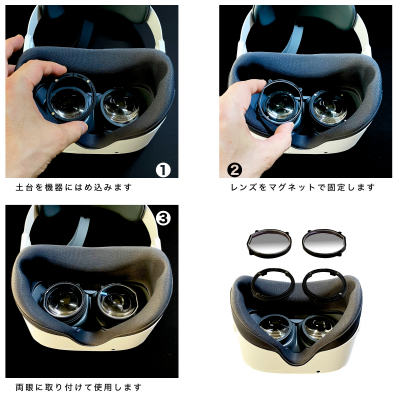 一般にVR機器では標準的な視力を前提として出力されるため、近視、乱視など、日常的に視力補正を必要とするユーザは、日常生活と同様にメガネやコンタクトレンズを着けたままHMDを装着しなければなりません。