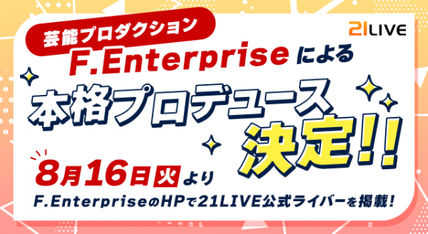 かねてから提携していた芸能プロダクション・株式会社エフエンタープライズ(F.Enterpris)が、正式に21LIVEをプロデュース!