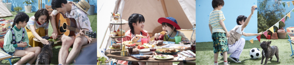 各シーンに本気で取り組んでくれた4人と1匹。プールのシーンでは、姉弟で競い合うように真剣に水遊び。グランピングのシーンでは、弟役の椿くんがチキンをモリモリ、何度も美味しそうに頬張ります。フレンチブルドッグのあずきちゃんも、元気におもちゃを追いかけたり、カメラ目線でスタッフを和ませたりと賑やかで楽しい、和気藹々とした撮影現場になりました。また、ナレーション収録ではナレーターのスチュアートオーさんがセリフのイントネーションに悪戦苦闘しながらも、何度もテイクを重ね、渾身の“屋上ハッピネス!”をシャウトしてくれました。