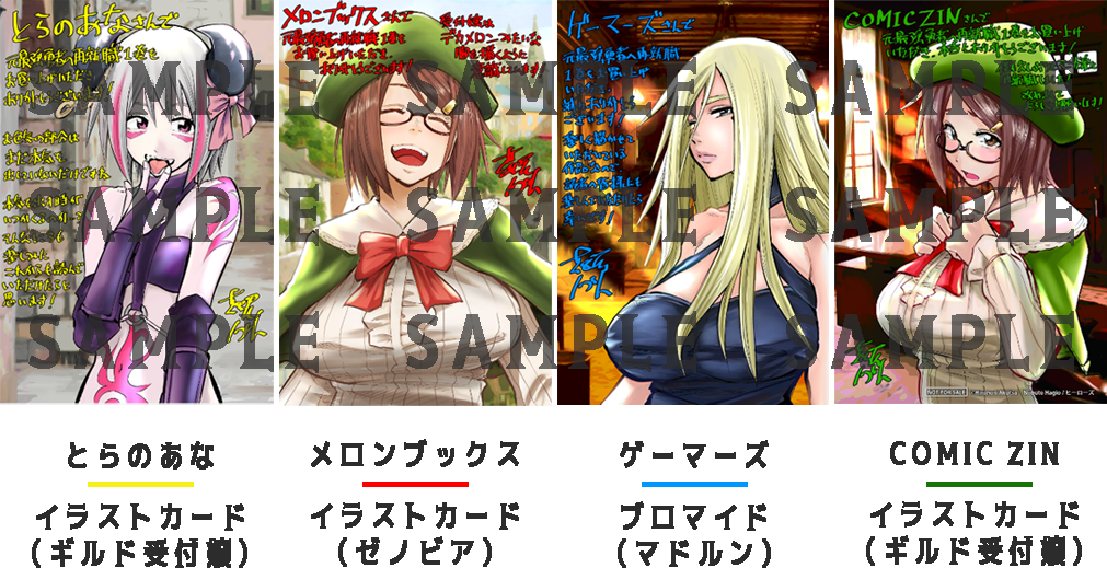 1巻の発売を記念し、とらのあな・メロンブックス・ゲーマーズ・COMIC ZINにて、作画担当の萩尾ノブト先生描きおろしイラストを使用した限定特典を配布いたします。