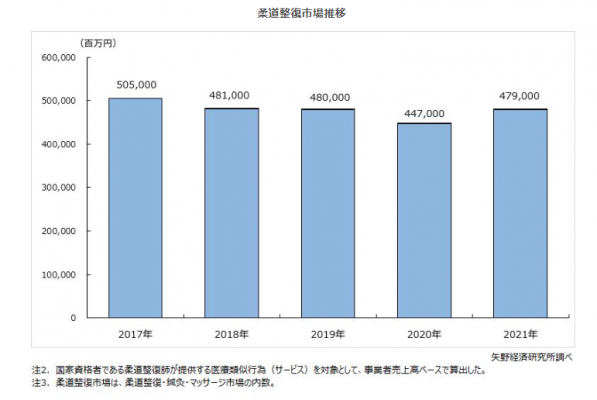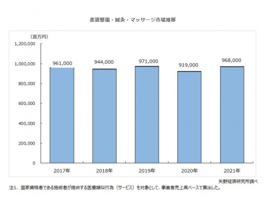株式会社矢野経済研究所(代表取締役社長:水越孝)は、国内の柔道整復・鍼灸・マッサージ市場を調査し、市場規模・動向、参入企業の動向、将来展望を明らかにした。