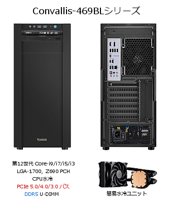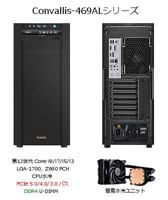 Convallis-469シリーズは、LGA-1700ソケット(ソケットV)第12世代Intel Core i9,i7,i5,i3シリーズCPUを、簡易水冷ユニットで冷却する静音性に優れたコンパクトなワークステーションです。