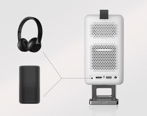 3w高音質スピーカーを内蔵しているので、本体だけで映像とサウンドの両方をご堪能いただけます。また、3.5mmのイヤホンジャックでイヤホン、ヘッドホン、アンプに接続も可能です。