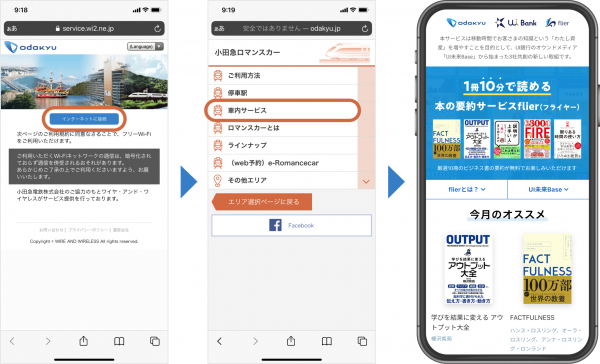 UI銀行のパートナー企業である、小田急電鉄株式会社、株式会社フライヤーとの3社協業により、odakyu Free Wi-Fi(※)専用のコンテンツとして、UI銀行のオウンドメディア「UI未来Base」から様々な情報の発信と、フライヤーの要約を提供いたします。