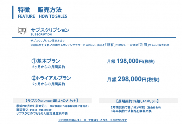 6ヶ月契約「基本プラン19.8万円/月(税抜)」と、2か月契約「トライアルプラン29.8万/月(税抜)」