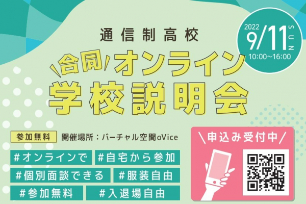 学校法人青叡舎学院勇志国際高等学校(校長 桜井剛)は、9月11日(日)に開催される、オンライン合同説明会_ズバット通信制高校比較(株式会社ウェブクルー主催)にブース参加することが決定しました。オンライン合同説明会はバーチャル空間サービス「oVice」を利用し、バーチャル合同説明会会場を自由に歩き回り、気になる参加校のブースで個別相談ができます。
