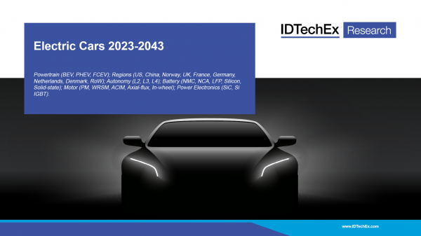 IDTechEx(先進技術調査会社: 本社英国 ケンブリッジ)は、「電気自動車 2023-2043年」と題した調査レポートを発行し、2022年8月19日より、日本法人のアイディーテックエックス株式会社(東京都千代田区)での販売を開始しました。