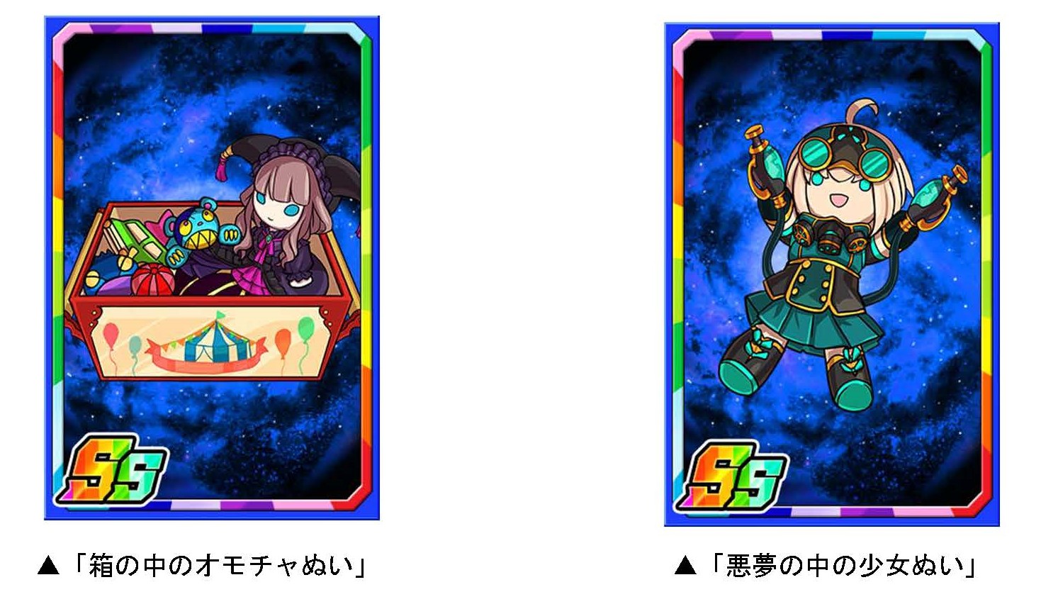 ダンジョンのボスモンスターを倒すと、まれに新たな限定子分カード「箱の中のオモチャぬい」「悪夢の中の少女ぬい」が手に入ります。限定子分カードは複数枚集めると進化ができ、子分スキルの効果が強力になります。