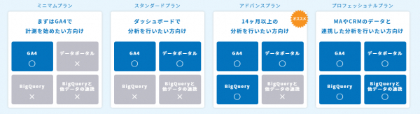皆さまのGA4移行のニーズに応えるため、パワー・インタラクティブでは4つのプランをご用意しました。