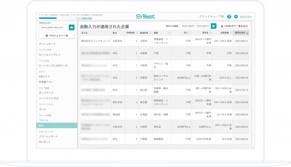 株式会社グラッドキューブ(本社:大阪市中央区 代表取締役 CEO 金島 弘樹 以下:グラッドキューブ)が運営する「 SiTest(サイテスト)」 は2022年8月30日(火) 、 EFO(エントリーフォーム最適化) に新機能「 BFO ( BtoB フォーム最適化) 」を追加したことをお知らせいたします。