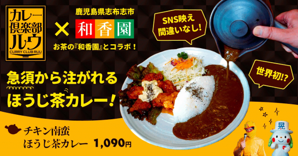 宮崎県ご当地グルメチキン南蛮カレーのお店、カレー倶楽部ルウ(宮崎県都城市 日置 純彦)と鹿児島堀口製茶/和香園(鹿児島県志布志市 堀口大輔)がコラボした急須で注ぐほうじ茶カレー【チキン南蛮ほうじ茶カレー】を9月1日(木)よりカレー倶楽部ルウ都城本店限定、1日各5食限定で販売開始いたします。