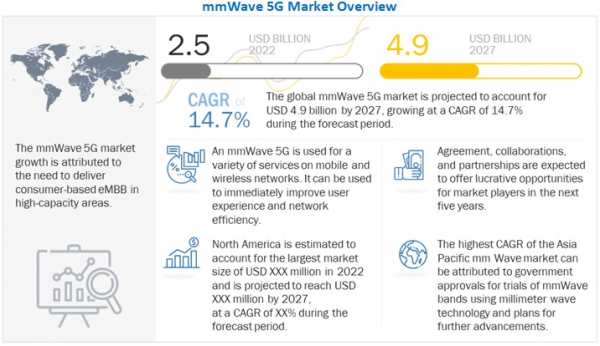 mmWave 5G Market by Component (Hardware, Solutions, Services), Use Case (eMBB, mMTC, URLLC, FWA), Application, Bandwidth, End User (Aerospace and Defense, Telecom, Automotive and Transportation, Public Safety) and Region - Global Forecast to 2027