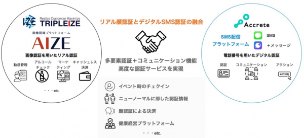 SMS認証の世界でコミュニケーションの最適化とセキュリティの両立を図るアクリートと、画像認識AIで次世代の日常となるパスワードレスの実現を目指すトリプルアイズは、お互いの認証技術を組み合わせることで、デジタルサイドからもリアルサイドからもアクセス可能な多要素認証プラットフォーム構築を目指してまいります。