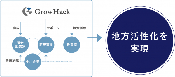 GrowHackは、地方中小企業と起業を志す人材のマッチングや、起業支援を行っております。この取り組みを通じて空き家問題解決、地方創生を実現します。