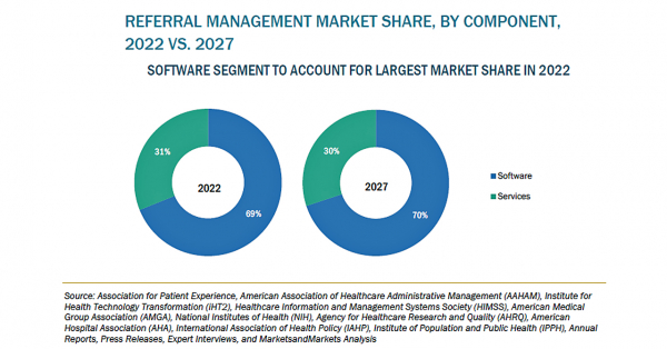 紹介状管理の市場規模は、2022年の32億米ドルからCAGR13.6%で成長し、2027年には61億米ドルに達すると予測されています。これは、医療施設における技術の進歩や、より良いケアを提供するために医療従事者が紹介状管理ソリューションを採用するようになったことなどが要因として挙げられます。