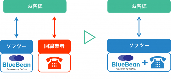 これまではコールセンターシステムと電話回線それぞれ別の提供会社とのご契約が必要だったため、お問合せをいただく際、サービスごとに別の会社・窓口にご連絡いただく必要がありました。BlueBean LineはBlueBeanとあわせてご契約いただくことで、お手続き・お支払い・お問合せを当社に一元化、お客様のご負担を抑えスムーズな導入とご利用が可能となります。
