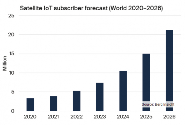 Berg Insight「衛星IoT通信市場(第2版)- The Satellite IoT Communications Market - 2nd Edition」は世界の衛星IoT通信市場を調査し、2026年までの市場予測を行っています。また欧州および北米の主要衛星IoT事業者44社についても紹介しています。Berg Insightは衛星IoT加入者数は2026年までに2,120万へ達すると予測しています。