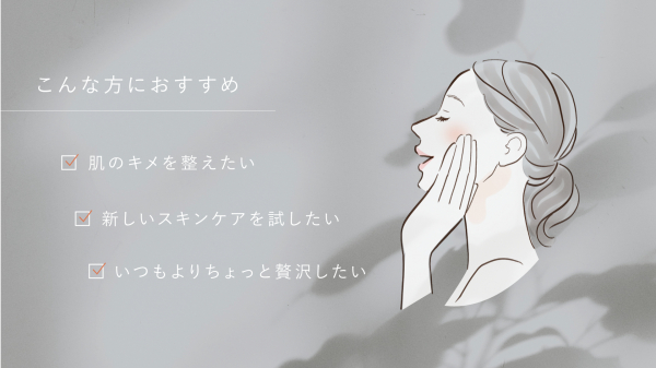 1剤のパウダーと2剤のエッセンスを、使用する際に混合する美容液。肌悩みを多角的にケアして肌感覚に働きかける。