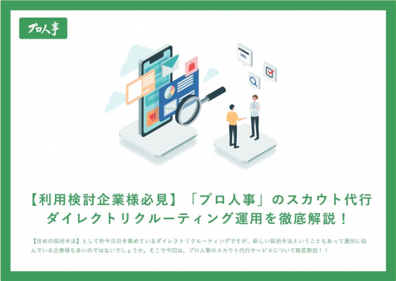 プレゼントさせて頂く内容は【利用検討企業様必見】「プロ人事」のスカウト代行ダイレクトリクルーティング運用を徹底解説!についてを書いたものです!