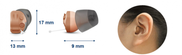 耳の中にスッポリ収まるサイズですので、正面からほとんど見えないだけでなく、楽な着け心地の形状です。本体重量はわずか0.9gですので、長時間着けていても疲れにくい補聴器です。