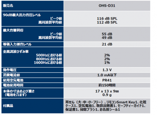 ・型番 : OHS-D31L(左耳用)、OHS-D31R(右耳用)、OHS-D31KIT(両耳用)