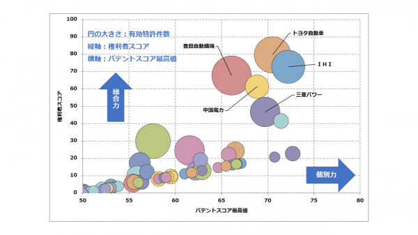 アンモニアは燃やしてもCO2が出ない燃料のため、従来の化石燃料に代わる燃料として大きな注目を集めています。本ランキングでは、2022年8月26日までに日本の特許庁で公開された「アンモニアの燃焼による利用関連技術」全般について、個別特許の注目度を得点化する「パテントスコア」をベースに、特許の質と量から総合的に見た評価を行いました。