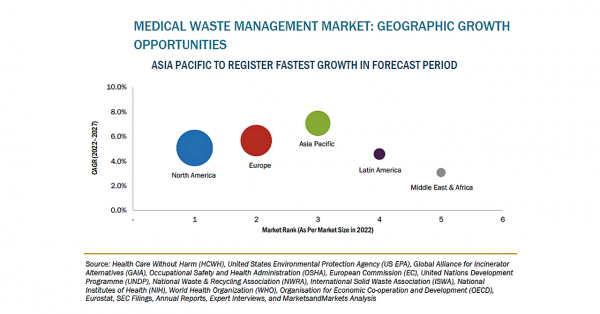 医療廃棄物管理の市場規模は、2022年の96億米ドルからCAGR5.6%で成長し、2027年には126億米ドルに達すると予測されています。これは、再利用可能な手術用具の使用増加や、先進国における医療廃棄物管理に対する認識向上プログラムの取り組みなどによるものです。