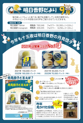 #明日香野 #いつでも明日香野 #ちょい食べ #和菓子 #明日香野だより #広報誌 #月見団子 #秋の和菓子 #大人の団子
