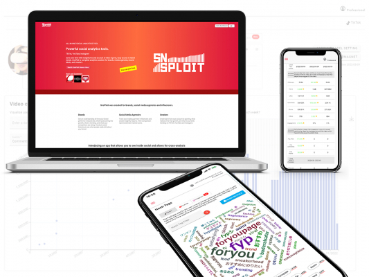 「SNSPLOIT」は、インフルエンサーを含む、ブランド、メディアエージェンシー、レコードレーベル、クリエイター向けの横断分析可能なオールインワン・ソーシャルサイト・アナリティクスツールとなります。