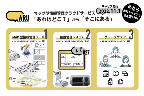 企業内のモノや情報を探す「あれはどこ?」の時間を「ARUにある」で最適化できるDXツールも開発いたしました。