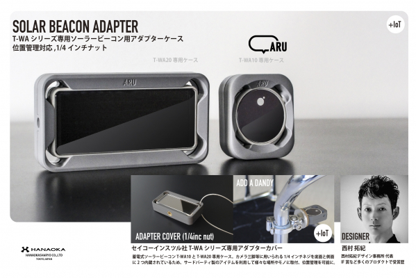 T-WAシリーズのソーラービーコンをどこでも取り付けやすくするために開発したのが、1/4インチネジに対応したアダプターです。(デザイナー:西村 拓紀氏)