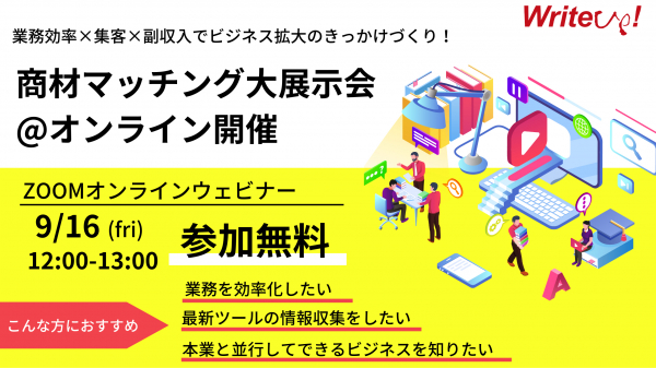・タイトル:商材マッチング大展示会@オンライン開催~業務効率×集客×副収入でビジネス拡大のきっかけづくり!~