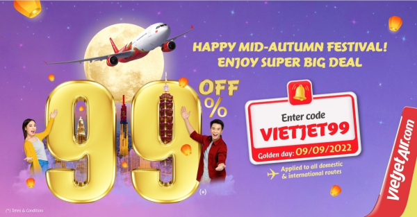 (東京、2022年9月8日) - ベトジェットは中秋節を盛り上げるため、最大99%の航空券割引でベトナム国内外へのフライトを提供します。