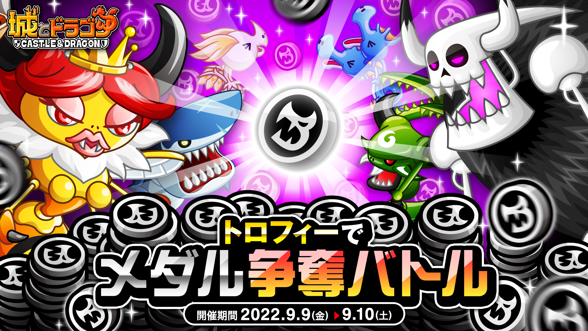 上記期間中、「トロフィーバトル」の全モードを対象に、勝利すると1日3回まで“3枚/5枚/10枚/20枚”いずれかのドラゴンメダルがもらえます。