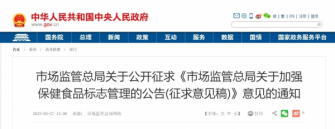 出典:2022年3月21日《市場管理監督総局による保健食品ラベルの管理強化に関する公告(意見募集案)》
