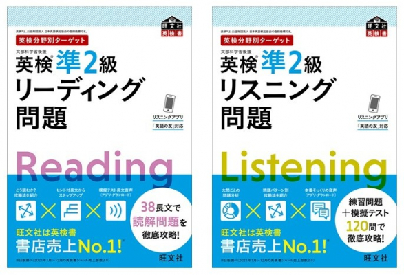 教育出版の株式会社旺文社(東京都新宿区、代表取締役社長 粂川秀樹)は、『英検分野別ターゲット 英検(R)準2級 リーディング問題』、『英検分野別ターゲット 英検(R)準2級 リスニング問題』を9月14日に刊行いたしました。