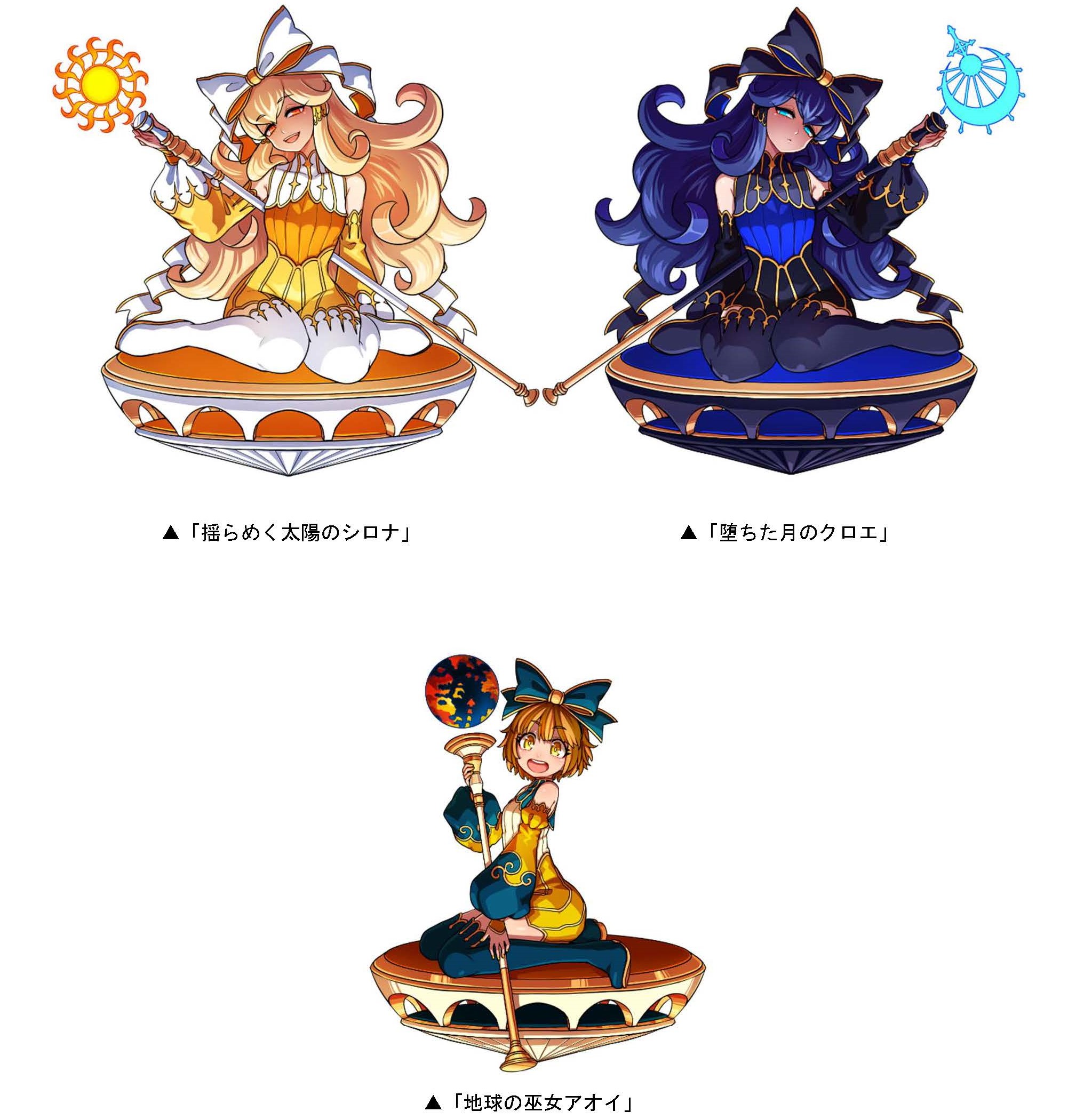 本ダンジョンには、ボスとして「揺らめく太陽のシロナ」「堕ちた月のクロエ」が出現します。また、道中には「地球の巫女アオイ」が出現し、クリアした回数に応じて竜石を手に入れることができます。