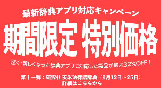 また、この「LogoVista 電子辞典 専用アプリ」を多くのお客様にご利用いただくため、ロゴヴィスタ直販サイト限定で『研究社 英米法律語辞典』が期間限定特別価格となる「最新辞典アプリ対応★キャンペーン」を開催いたします。
