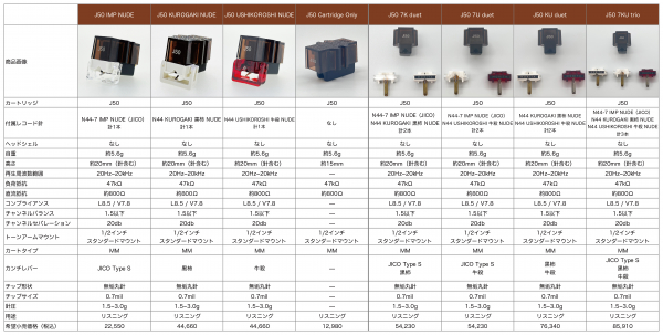 「J50」は「J44D」「J44A 7」よりも高出力で本格リスンニング用のMMカートリッジです。