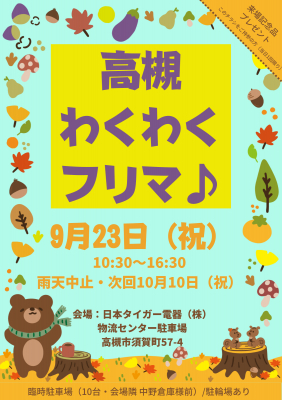 ★高槻わくわくフリマ♪は日本タイガー電器(株)が自社の物流センター駐車場(高槻市須賀町57-4)で地域交流の為に月に一度行っているフリーマーケットイベントです!