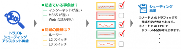 IT 障害の原因候補を弊社の 20 年に渡る運用ノウハウにより、トラブルシューティングを支援する新機能