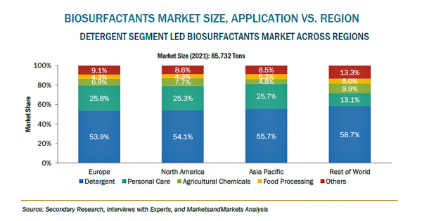 石油化学製品から生産される界面活性剤は、さまざまな化学プロセスを経て、有毒な廃棄物やガスを放出します。これらの化学物質は、環境と健康に影響を与える可能性があります。米国環境保護庁(US EPA)、食品医薬品局(FDA)、フロリダ州環境保護庁、REACHなど、環境中の有毒化学物質の排出を規制する法律や規制を課す規制組織では、生物由来の界面活性剤の使用を後押ししています。製造業者の意識の高まりにより、バイオ界面活性剤の商業規模での実現を目的に、研究開発活動が活発化しています。