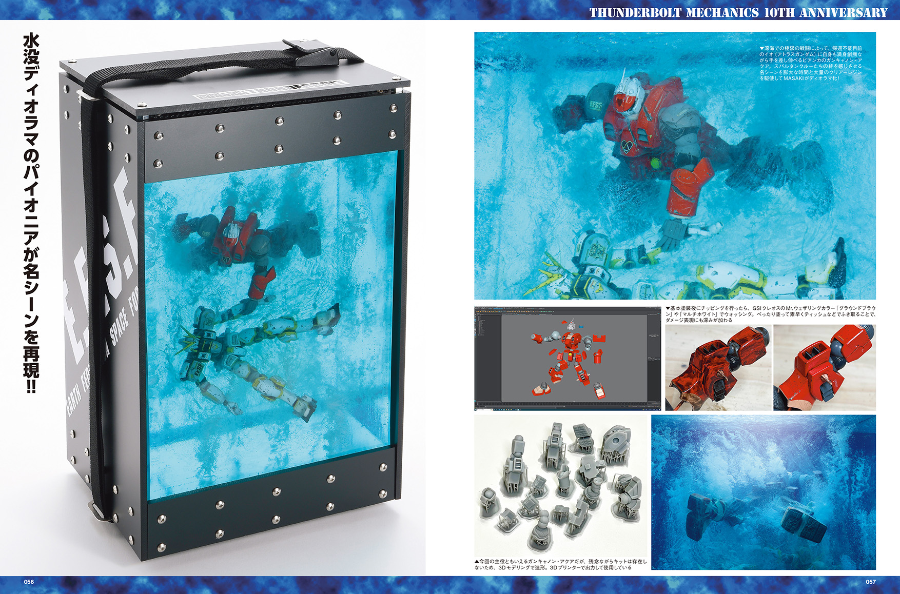 幻想的な水没ディオラマで知られるMASAKI氏は、「第17回 全日本オラザク選手権」サンダーボルト部門で金賞を獲得するなど、『機動戦士ガンダム サンダーボルト』と浅からぬ縁があるモデラーのひとり。
