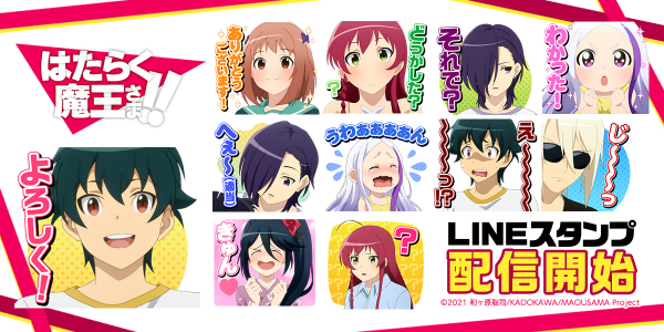 TVアニメ「はたらく魔王さま!!」のLINE着せかえに続き、インクルーズよりLINEスタンプが初登場!日常で使いやすいLINEスタンプが盛り沢山! 魅力的なキャラクター達と一緒にトークを盛り上げよう!是非LINE着せかえだけでなく、LINEスタンプでもTVアニメ「はたらく魔王さま!!」の世界をお楽しみ下さい。