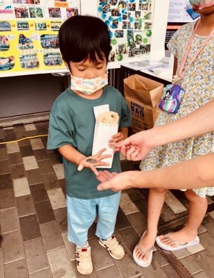 当日園児たちから「おかね1つ(500円玉)もらって2つ(100円玉)かえすの?どうして?」