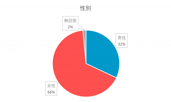 「男性」が32%、「女性」が66.5%、「無回答」が1.5%でした。