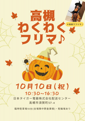 この 高槻フリマ は、当社が創業以来、59年に渡り本社をおく、高槻市地域の皆様に感謝の気持ちを込めて毎月1回開催する、地域密着交流型イベントです。「遊びに来るも良し!」「出店するも良し!」、地域の皆さまと楽しく1日を過ごしたいと思っています。当日はハロウィンにちなんだ、仮装パーティー「#仮装でフリマ♪」や縁日(ヨーヨーすくい・スーパーボールすくい・輪投げ・くじ等)やパフォーマンスブースでのイベント開催、話題の飲食ブースなどもあります♪掘り出し物や1点ものも満載!わくわく・ドキドキの商品を探しに来てください! 高槻フリマ はここで決まり!