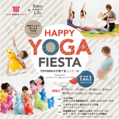 一般社団法人ボディセンス・インスティテュートは、9月4日(日)トヨタモビリティ富山 Gスクエア五福様にて、無料ヨガイベント「HAPPY YOGA FIESTA」を開催いたしました。「地域の皆さんの健康をサポートし、子育て世帯を応援したい」というトヨタモビリティ富山様の想いを受けて実現した本イベント。3歳~12歳の子ども向けキッズヨガ「ロディヨガ(R)」、13歳以上の方の健康増進のための「骨盤調整ヨガ(R)」を無料で体験していただきました。