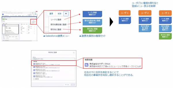 名刺情報から「取引先」「取引先責任者」を作成する連携機能をユーザごとに個別に設定可能。